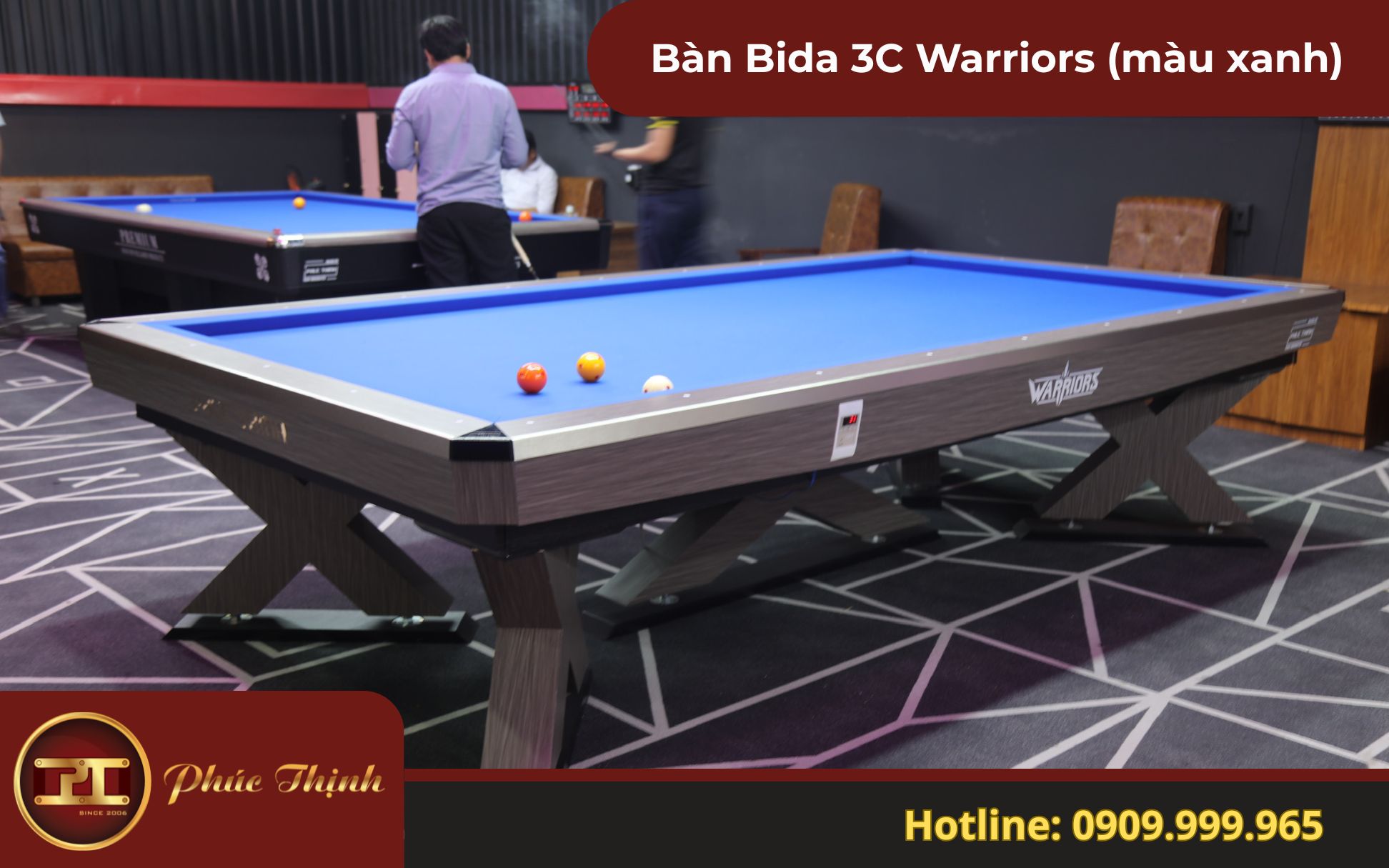 - Đa dạng lựa chọn và dịch vụ hỗ trợ: Ngoài bàn BIda 3C Warriors, Phúc Thịnh còn cung cấp đa dạng mẫu bàn Bida lỗ & phăng từ các thương hiệu nổi tiếng như thương hiệu bàn Bida Rasson, bàn Bida Mr Sung, bàn Bida Aileex, Hollywood,…. cùng với các phụ kiện chất lượng.